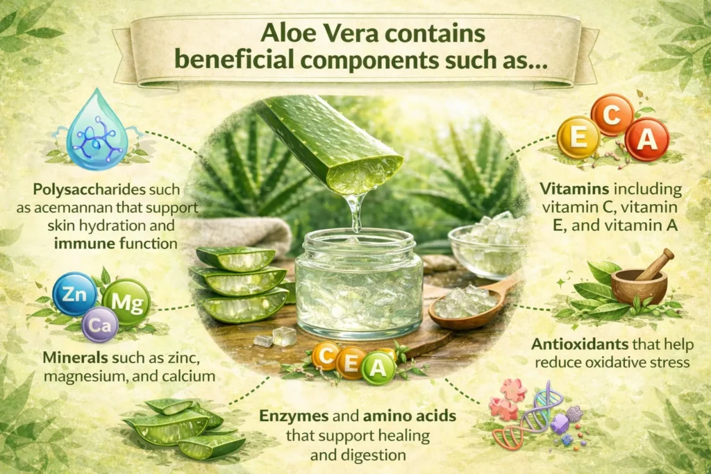 Research from the National Institutes of Health notes that aloe vera gel contains polysaccharides that may help support skin hydration and healing processes. NIH