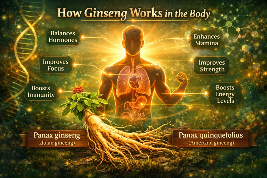 Ginseng works through both Ayurvedic and modern biological mechanisms.